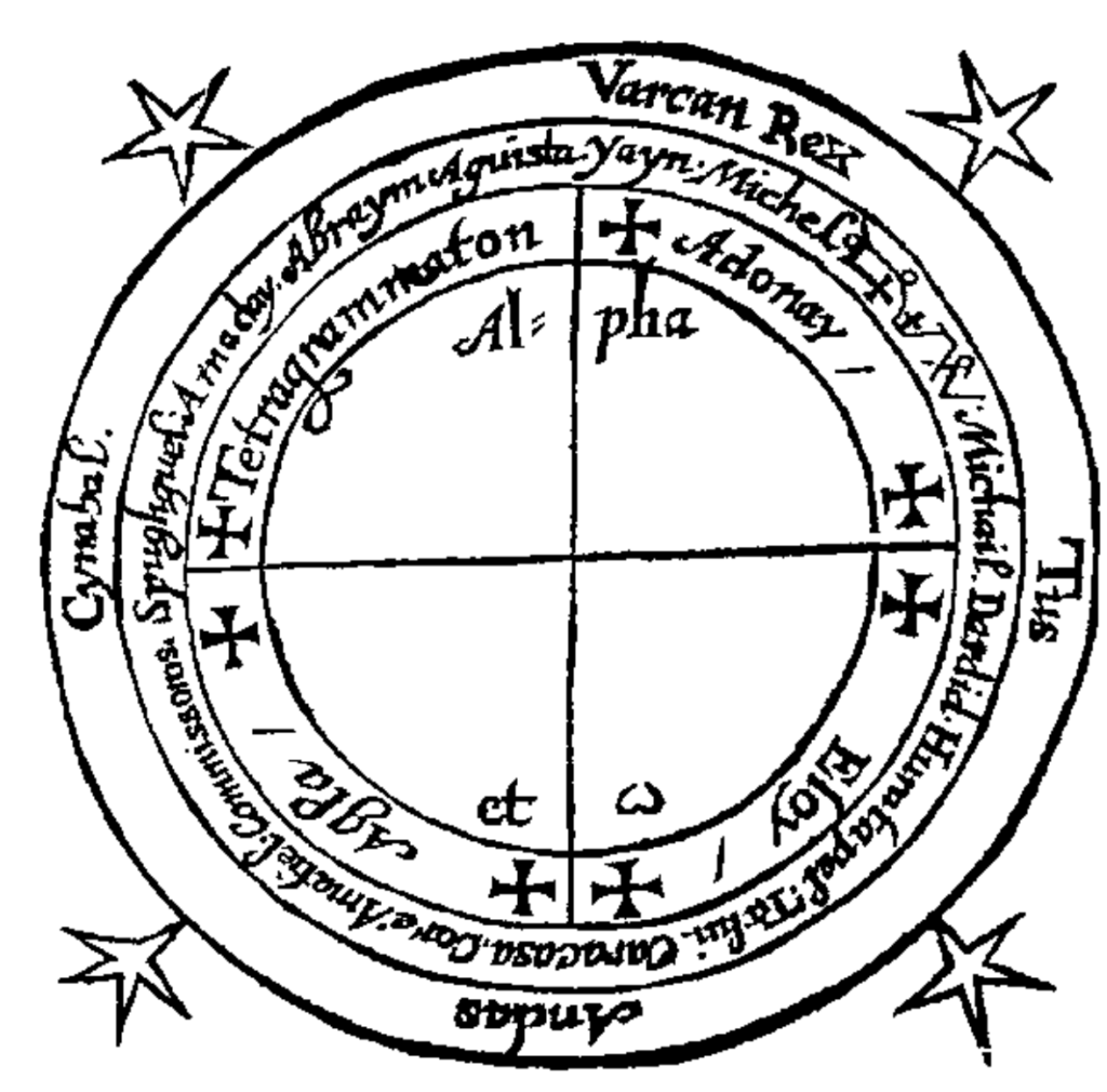 As spirit conjurations got Christianized, the form of these circles changed. They became more elaborate, including many layers of divine names, angels, or spiritual powers. The function, however, was more or less the same: a shield to separate the operator from potentially hostile spiritual powers.